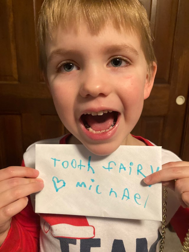Michael lost his very first tooth on December 28 and his second one to ring in the New Year on January 1. He already has three permanent teeth on their way, so we’ll likely see more of the Tooth Fairy this year. (It’s very common, but very weird: Michael’s two bottom middle teeth started coming in a month or so ago and they basically pushed the baby teeth out, causing us to miss the whole “jack-o’-lantern” missing teeth look!)