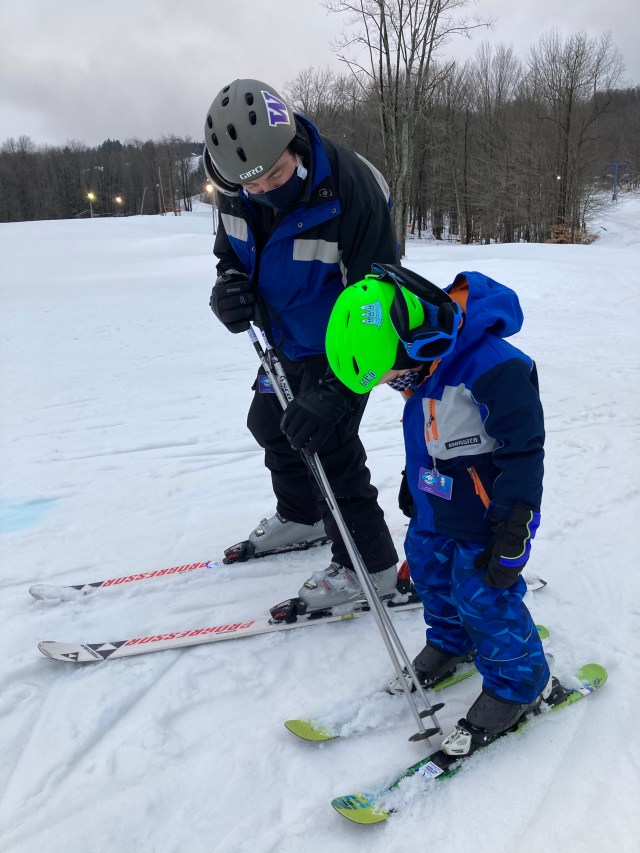 We’re skipping hockey this winter but have embraced skiing, joining the Buffalo Ski Center. Michael had his first lesson a few weekends ago and he LOVES skiing. We stayed a few hours after his lesson and two hours after putting skies on for the first time, he can ski as well as I can, cruising up and down the magic carpet hill like an expert.
