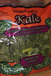 - 1 Trader Joe’s bag of kale, leaves stripped from stems