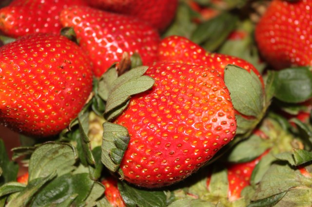 So, here it is: The strawberry is unusual in bearing its “seeds” on the surface of the fleshy portion, not inside. The seeds are actually miniature dry fruits, similar to buckwheat and sunflower seeds and the fleshy portion is the flowers swollen base, not its ovary. Strawberries don’t improve once picked, so they must be picked ripe.