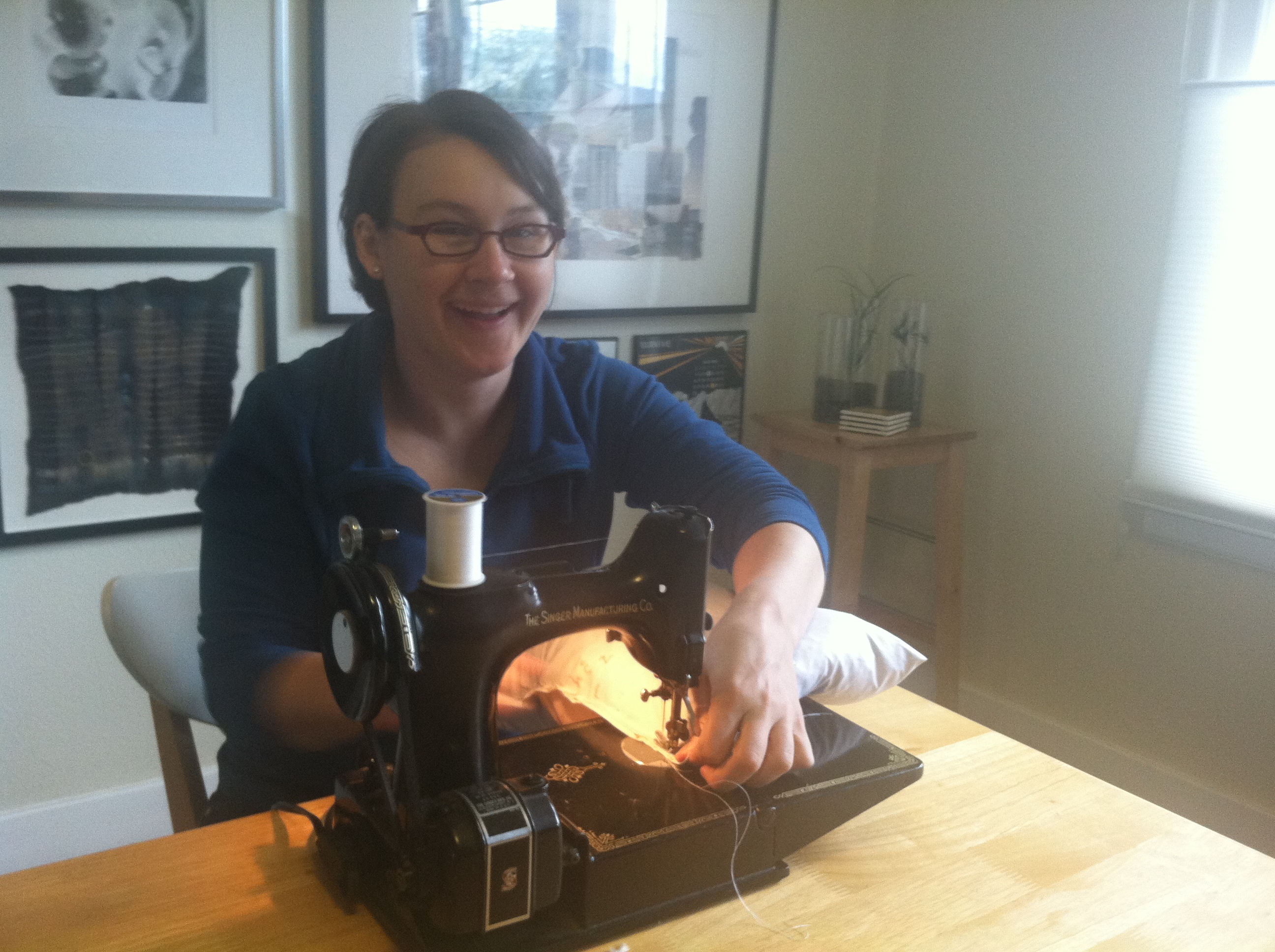 But, we pressed on, pinned the pillows back together, sewed them shut and then put them into the cases. Voila! A miracle! And they look so, so good, don’t you think? One of them even has a fully-functioning zipper!