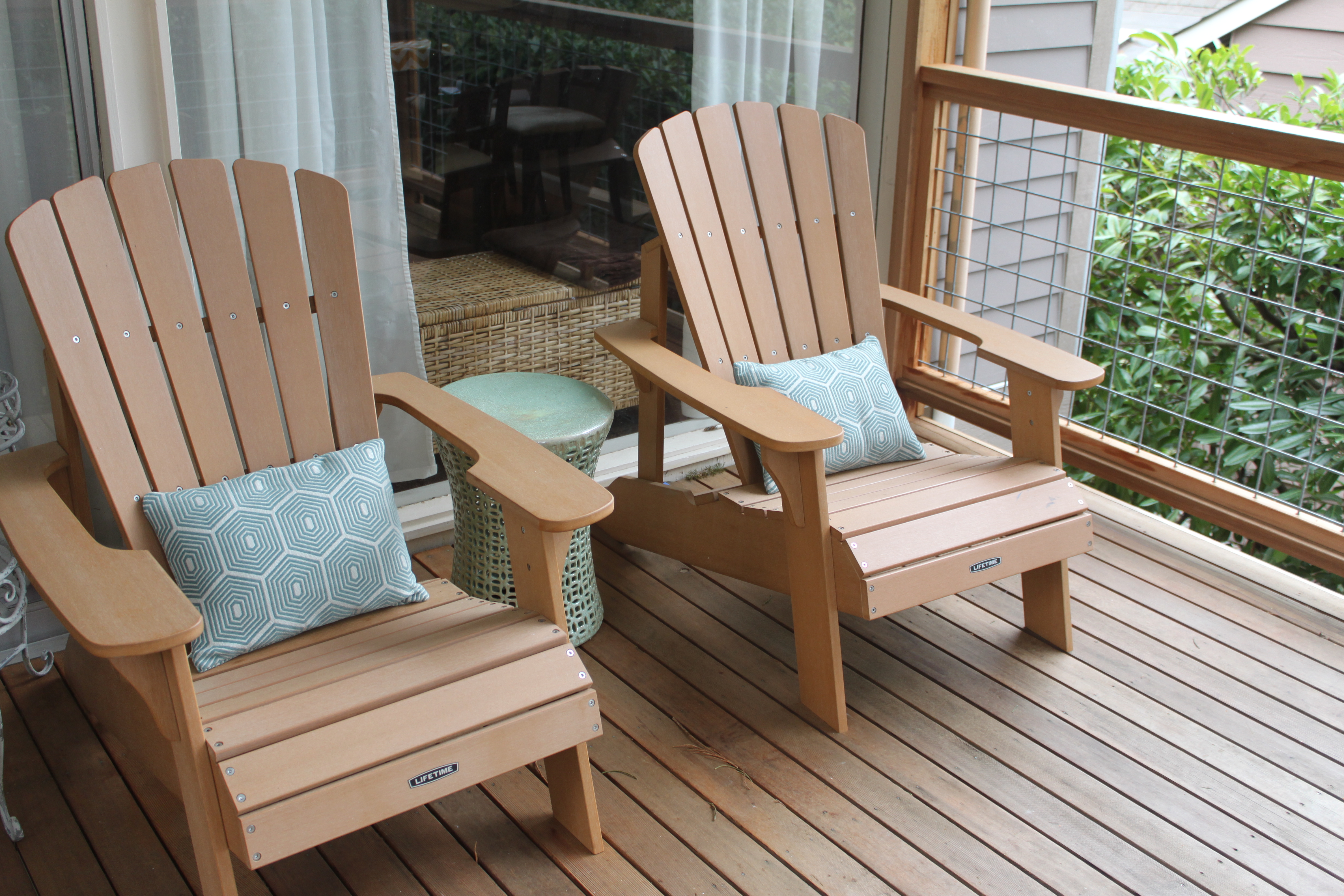 With our deck remodel in mind we bought two Adirondack chairs last summer and haven’t really had a chance to enjoy them…until now. The deck has been retrofitted and is as stable as can be. The patio is built and we’re ready to move the wrought iron table and chairs to their spot down there (photos to come on the next sunny day, when we can properly stage it).