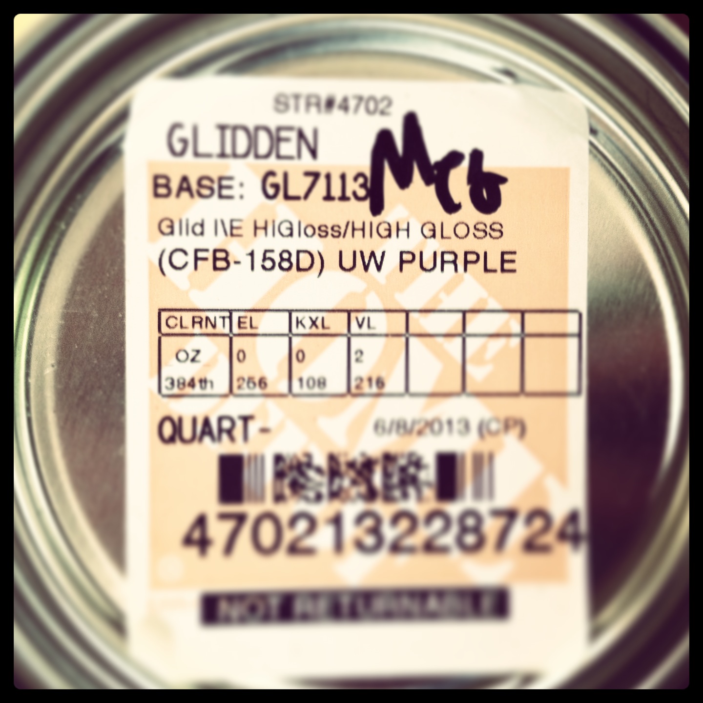 The first, Husky “W” benches! These classic, boring benches came with my house and have been un-cared for more than five years. They’re still a work in progress, but this weekend I designed, primed, painted and lacquered the tops of the two benches. I’ll let them dry through tomorrow and then turn them over and paint the underside and legs “UW Purple.” (It’s an actual color! Thank you, Home Depot!)