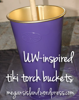 While I was at Home Depot picking up “UW Purple” and other various paint colors, I also picked up two tiki torches for the backyard. (More on that on Friday for my “Gone Pinning” post on mosquitoes!) I’ve had two French florist buckets (of sorts) from IKEA that would make the perfect base for the torches for years. These buckets needed some TLC, so this morning, they got it!