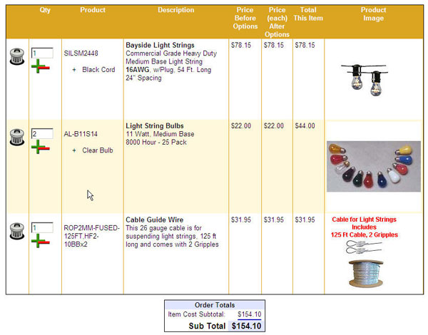 This is what I ordered. The grand total ended up being $154.70 + shipping. BLI has a $25 minimum order, so I ordered double lightbulbs to replace them as they burn out, since ordering additional bulbs later wouldn’t meet the minimum order.