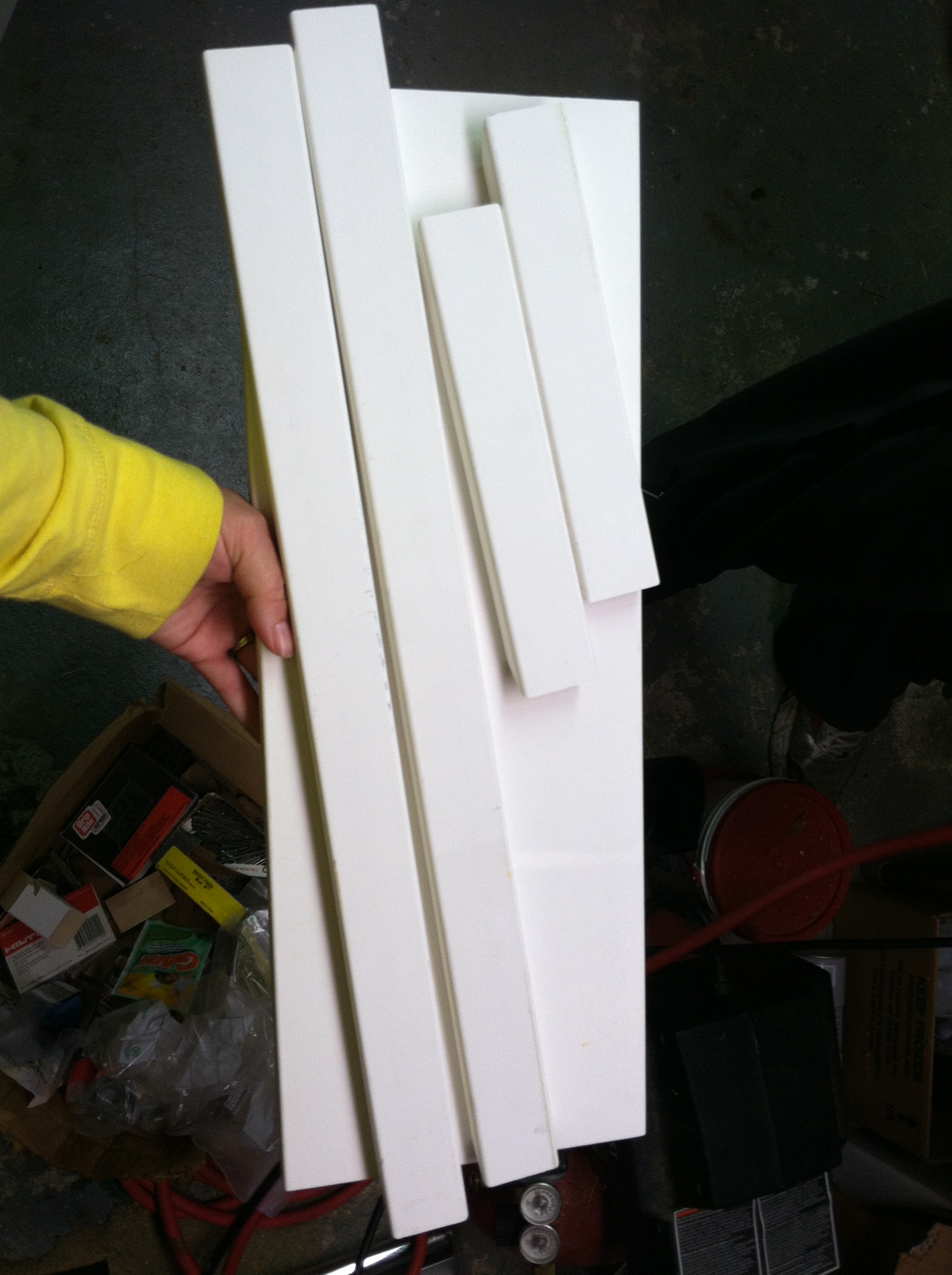 - One long piece (about 6 feet long) of 1.5″ MDF trim (slightly rounded on one side)