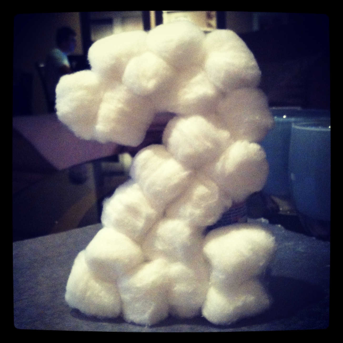 I also made a cool terrarium with a hurricane we used for our wedding, a pre-historic looking plant that we had growing very tall in the kitchen and a small pot of mixed succulents. It turned out great an cost less than $3!