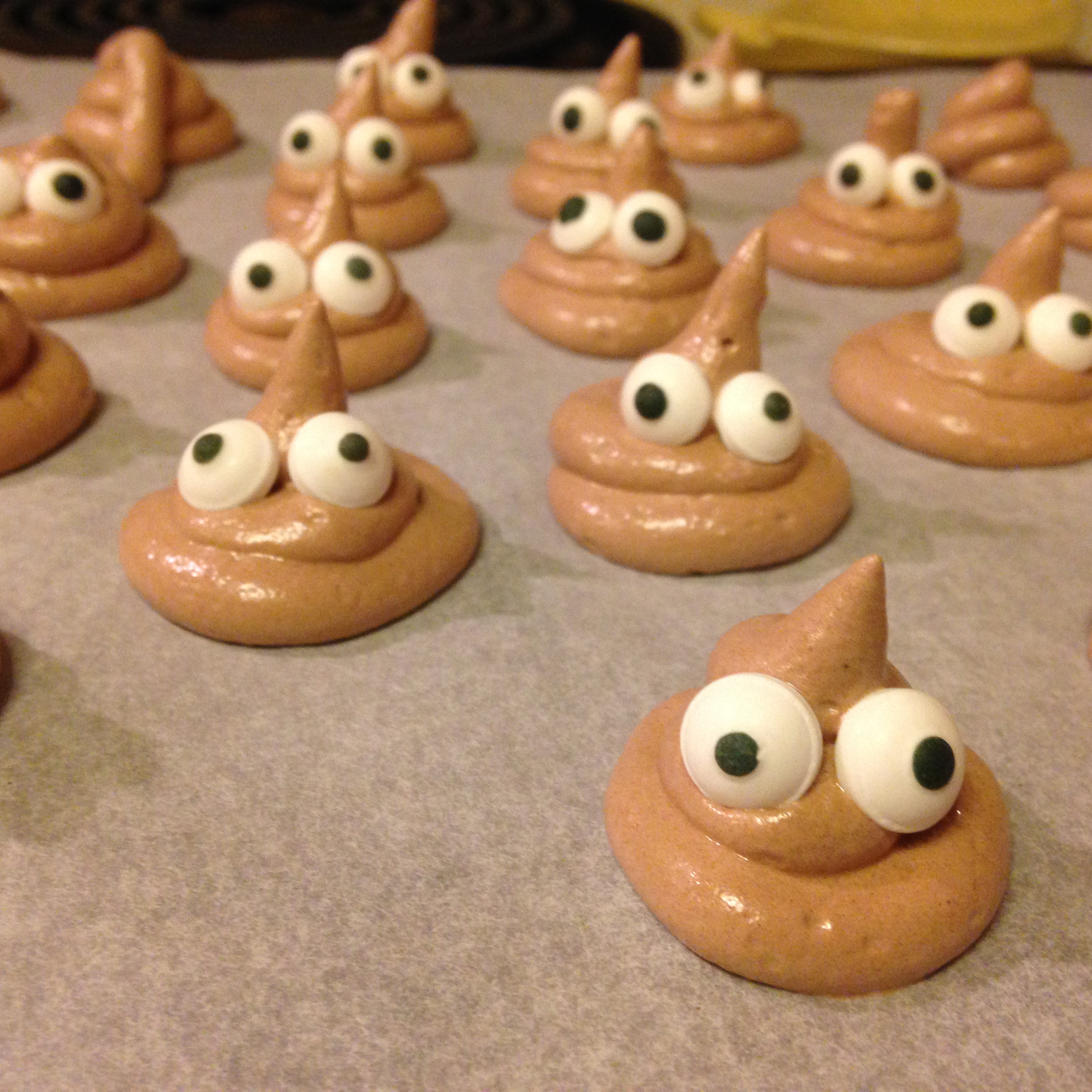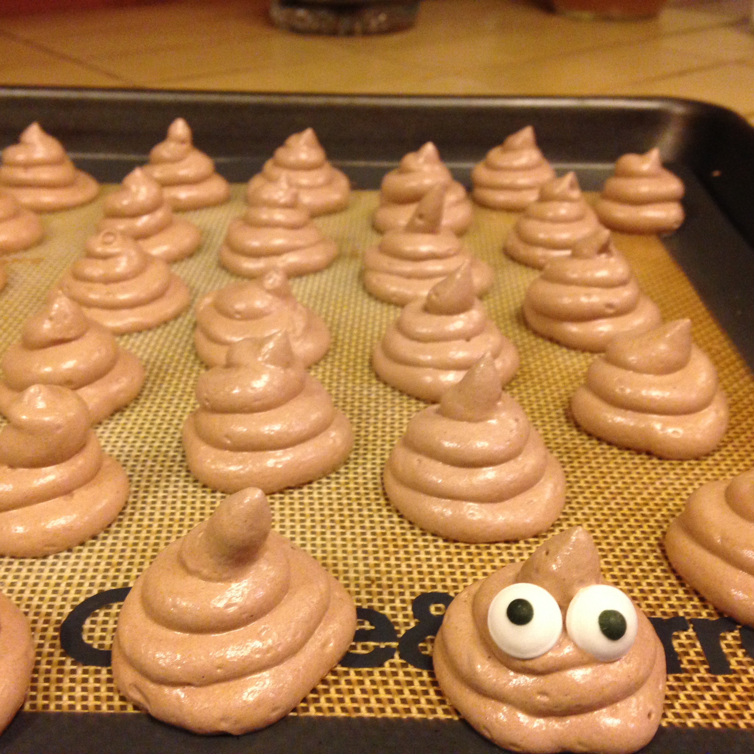So, I went about trying to make them. All meringue recipes are very similar: egg whites, sugar, vanilla, cream of tarter and color or flavoring. I followed this recipe for my poop emoji meringues. As opposed to coloring them brown, I used cocoa powder, so while they look like poop, they don’t taste like it.