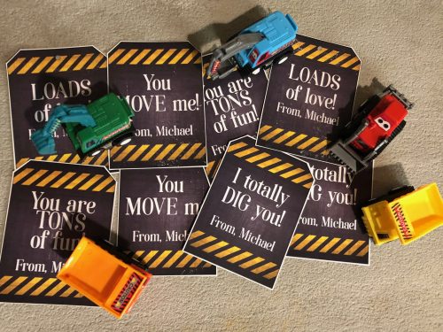 We bought these cars (Michael loves them so much he’s keeping some to play with!) and I made these simple tags with four fitting phrases: