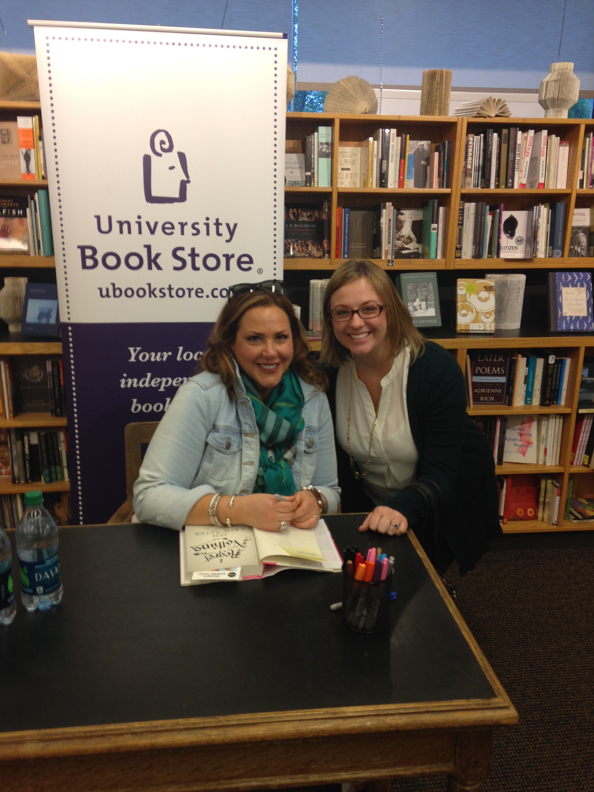 My dear friend Megan and I are big fans, so we pre-ordered the books and arrived at the University Bookstore extra early. We scored front row seats to the action and watched as Jen was interviewed by Seattle Times’ columnist  Nicole Brodeur. They covered all sorts of topics — Which book is Jen’s favorite? Where does she find inspiration for her writing? How did she tear her Achilles tendon? — Jen read a passage from the book — about her visit to to Italy and the ordeal of finding espresso — and she even pulled a couple of the audience “bucket list” items and commented on them. Sadly, one of my six (or so) submissions didn’t get pulled. I was really hoping she’d read the one about her: “Go out for a drink with my favorite author.” Alas, she didn’t. Instead, Megan and I went to dinner afterward.