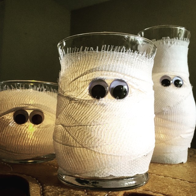 This idea came from this year’s Better Homes & Garden’s Halloween magazine. We likely won’t put it outside for trick-or-treaters, but you’d better believe it’s filled with all our favorite candies already, awaiting Halloween this weekend.