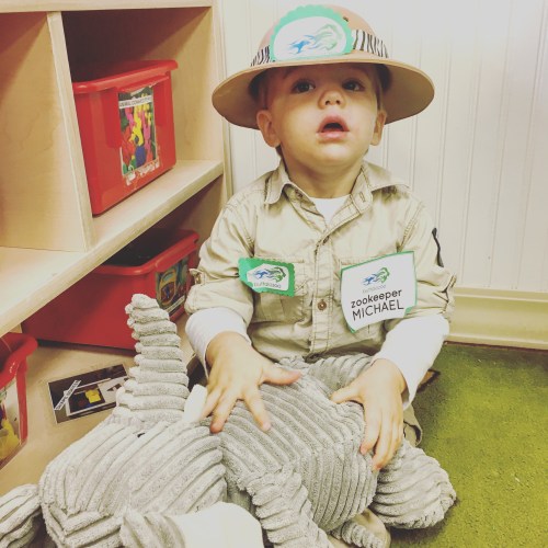 For Halloween, Michael dressed up as a Buffalo Zoo zookeeper and tried residential trick-or-treating for the first time. He made it to about 12 houses in 45 minutes, and continues to enjoy the sweets he received.