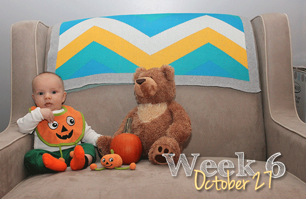 You’ve also already seen Michael’s pumpkin bib. It was a gift and was perfect for Halloween and his six-week Facebook photos.